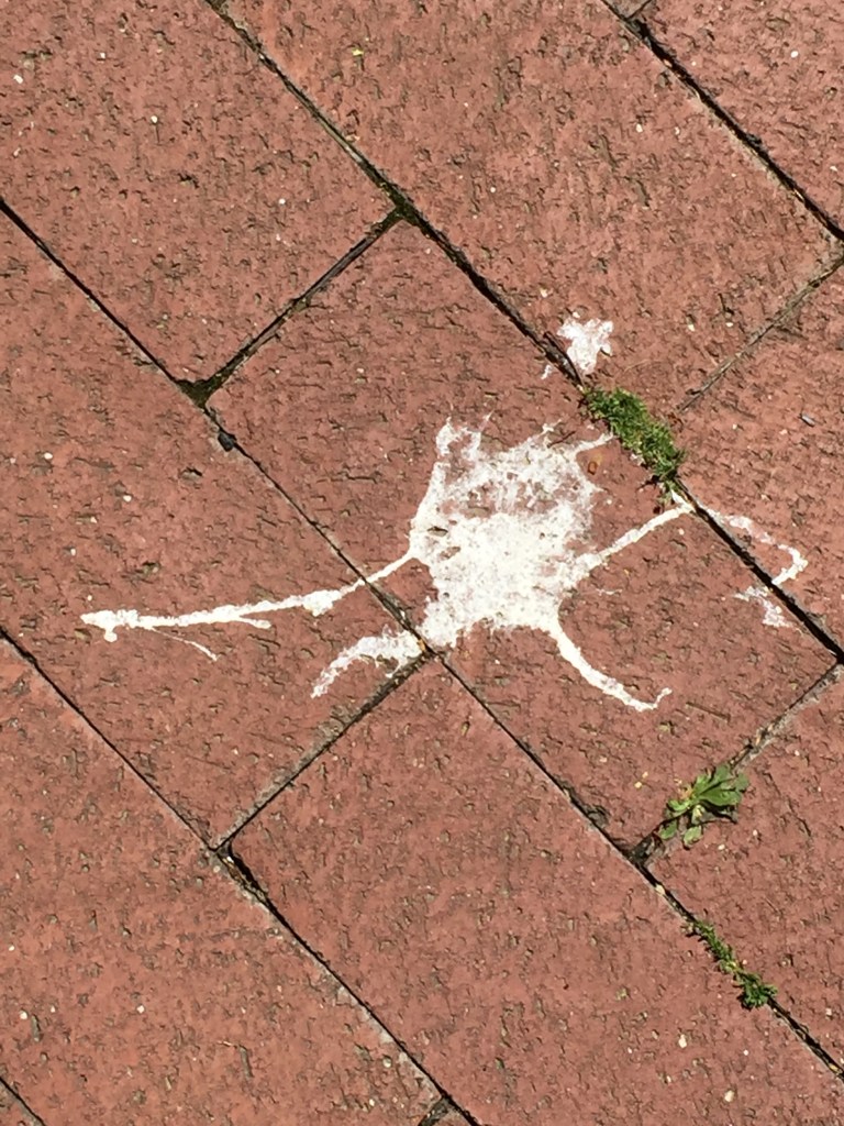 Wounded Pink-Eyed Albino War Beast or Long-Legged Creature With Arms Outstretched Urinating in Public